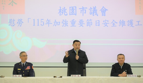 【記者葉志成 /桃園報導】115年春節將至,桃園市議會為感謝警察、消防同仁於「加強重要節日安全維護工作」(春安期間:2/9—2/23)期間投入辛勞,議長邱奕勝暨議員同仁,於22日上午前往桃園市政府警察局及消防局,慰勞警、消人員,並致贈慰勞金總計 254 萬元。