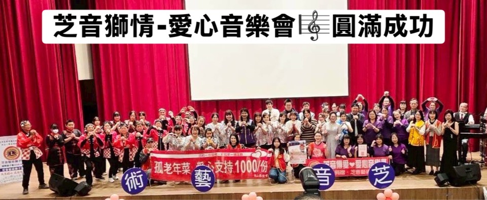 芝音藝術獅子會符合國際總會特殊興趣分會宗旨,結合音樂藝術專業與公益服務。8年來舉辦音樂會、藝文講座、社區關懷等活動超過50場,參與志工累計800人次。獅友竭盡全力無私奉獻,將所學專長化為服務能量,讓愛的循環發展更大層面影響力。