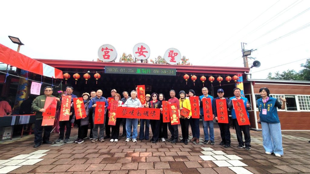 本次活動由聖安宮主任委員李樹根發起辦理,李主委長年樂善好施、熱心公益,對待鄉內民眾如同親人一般,曾捐贈救護車,並於寒冬時節送暖,致贈羽絨外套予鄉內長者,是地方鄰里口中公認的「大善人」。有鑑於農曆春節將近,特別舉辦此次贈春聯活動,希望透過傳統書法文化,為鄉親送上滿滿的新春祝福。活動當日由聖安宮副主任委員傅錦英主持,現場冠蓋雲集,蒞臨會場的民意代表包括縣議員陳宏宗、鹿野鄉長李維順、縣長秘書王馨梅、議長秘書溫昌寶、潘貴蘭議員服務處主任張博翔、立法委員黃建賓服務處主任彭國雄,以及鄉民代表郭清塗、鄧清欉等人,另有多位地方士紳與鄉親共襄盛舉,展現地方高度凝聚力。活動現場邀請多位書法名家揮毫潑墨,免費為民眾撰寫春聯,內容吉祥喜氣,象徵迎春納福、祈福避凶;另設有創意春聯及拓印春聯體驗活動,讓民眾能親手感受書法藝術之美,吸引鄉內大批民眾扶老攜幼前往參加,現場人潮絡繹不絕,氣氛熱鬧滾滾,洋溢濃厚年節氛圍。
