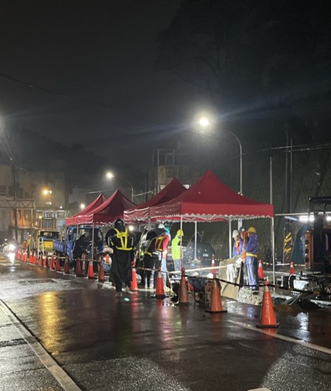 台水公司一區處今(28)日表示,27日晚間施工期間天候不佳,持續降雨且氣溫驟降,作業環境嚴峻,施工團隊仍在強風與寒雨交加下徹夜搶修,因事前整備周延,施工人員通力合作,克服困難終能提早完成修復,恢復停水區用戶供水,目前基隆地區供水設施均運作正常。