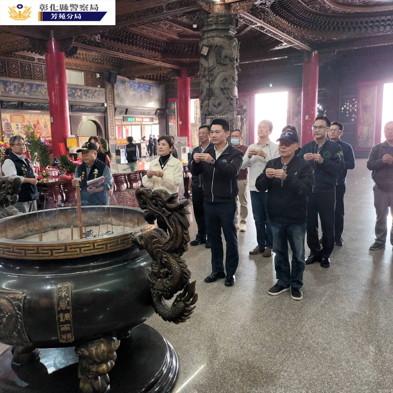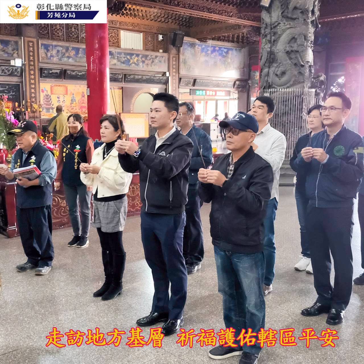 【記者 彭可可/綜合報導】彰化縣警察局芳苑分局分局長長黃一航於本月(26)日正式到任後,隨即展開走訪地方行程,昨(27)日特別率領分局幹部前往轄區芳苑鄉普天宮參拜祈福,祈求地方平安順遂、警政工作推展順利並藉此與地方宮廟代表互動交流,傾聽地方心聲,展現主動貼近民意的親民作風。