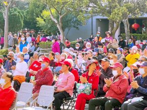 活動當天新北真愛慈善團進行公益表演,帶來豐富且精彩的歌舞與音樂演出,為活動注入滿滿活力與歡樂,現場掌聲與笑聲此起彼落,氣氛熱絡溫馨。透過公益團體的用心演出,也讓住民長輩感受到社會各界的關懷與祝福。這場春節聯歡園遊會設置多個美食攤位,提供各式點心與飲品,讓住民一邊品嚐美食,一邊彼此交流聊天,享受難得的團聚時光。