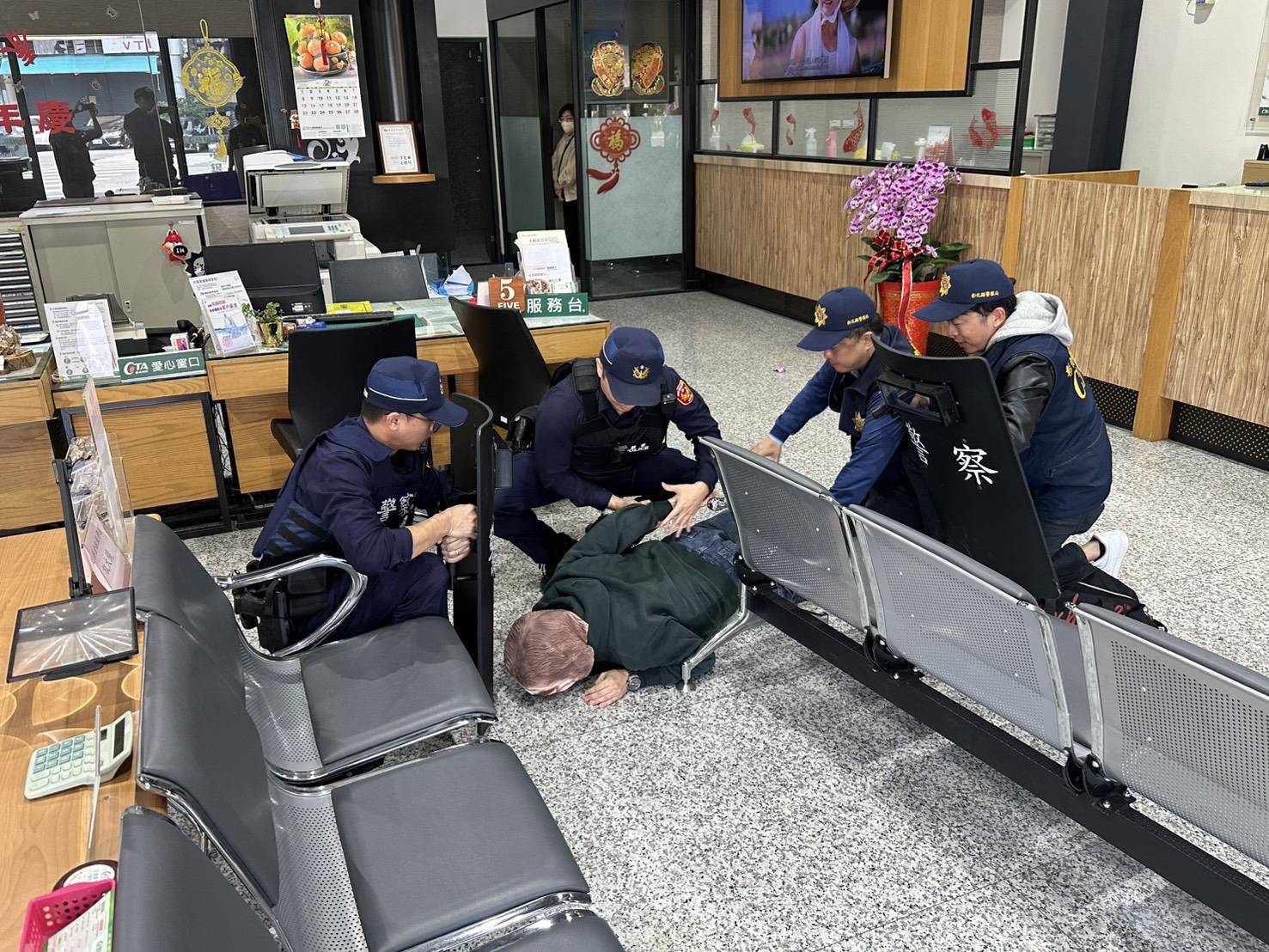 農曆年節期間,尾牙活動、年終獎金及紅包發放,金融機構現金流量大幅增加,容易成為不法之徒覬覦目標。警方除持續加強金融機構周邊巡邏、守望及臨檢勤務外,也透過防搶演練,提升員警快速應變能力與行員自我保護及通報機制,確保年節治安平穩。