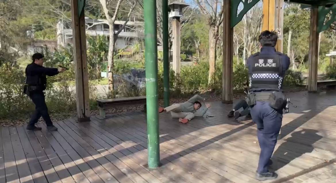 橫山分局逼真防搶演練 民眾主動詢問協助抓搶匪(圖/橫山分局提供 彭可可翻拍)