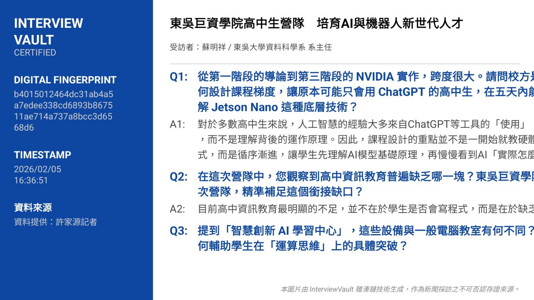 東吳大學巨量資料管理學院在寒假期間推出「高中資訊教育營隊」,吸引近百位內湖高中與陽明高中師生參與。透過校內「智慧創新AI學習中心」的高效能設備,營隊以系統化課程結合實作體驗,引導高中生從日常使用的ChatGPT出發,一步步探索人工智慧與機器人科技的實際運作,成功縮短高中與大學資訊教育的落差。資料科學系主任蘇明祥接受採訪時指出,許多高中生雖熟悉AI工具,卻缺乏對整體系統的理解,這次營隊正是精準補足這個缺口。