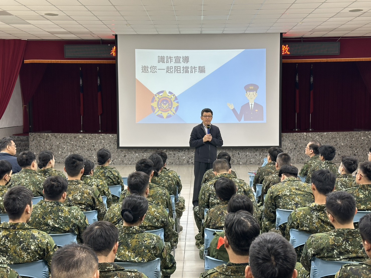 隨後,由刑事警察大隊承辦人針對近期國軍常見的三大詐騙類型進行說明,包括:一、假交友詐騙:詐騙者多透過交友APP假藉甜言蜜語建立感情連結,進而誘導購買虛假商品或轉帳金錢。二、假投資詐騙:利用假網站或冒充專業財經人士,吸引官兵投入「保證獲利」的虛假投資平台,最後人財兩失。三、解除分期付款詐騙:冒充客服謊稱誤設訂單,要求官兵操作ATM或網銀解除,實則轉帳給詐騙集團。