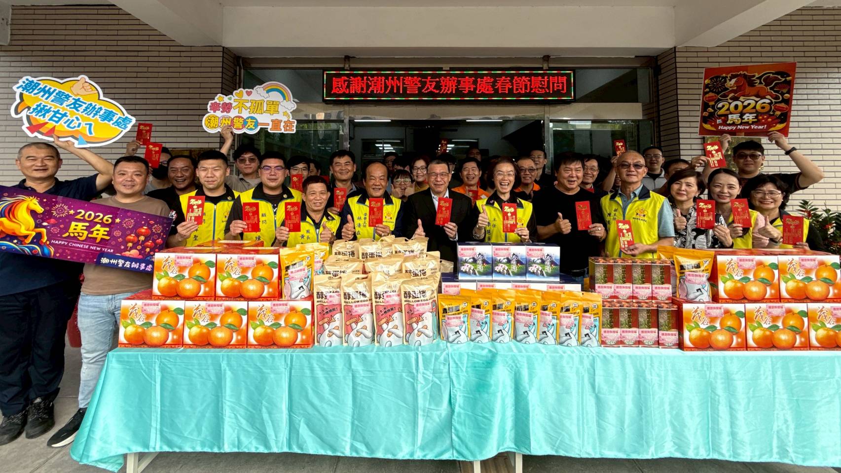 潮州警友辦事處長期以來作為潮州分局最堅強的後盾,持續支持警政工作推動,今年精心準備豐富的慰問品及春節紅包,並貼心加碼致贈各單位加菜金,藉此表達對同仁長時間執勤與犧牲假期的感謝之意,讓員警在繁忙且高強度的春節勤務中,感受到警友辦事處如同家人般溫暖的支持與鼓勵,現場氣氛溫馨熱絡。