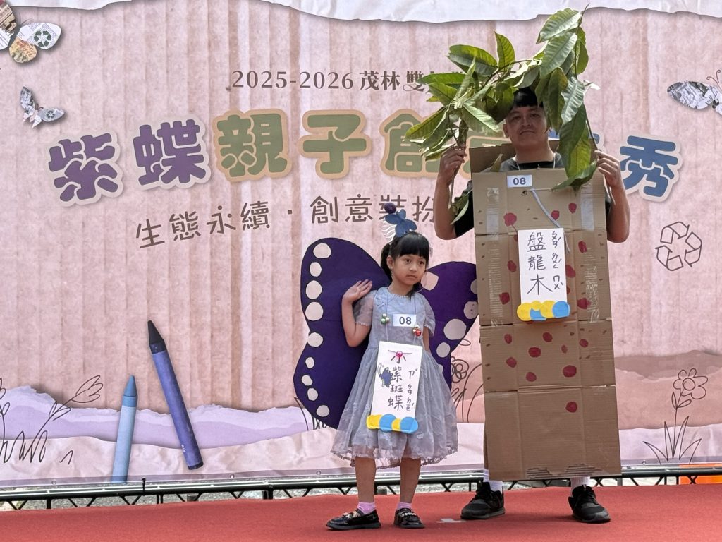 本次活動吸引20組大小朋友報名,活動設計鼓勵親子共同運用環保素材、回收物件或自然元素進行創意裝扮,從紫斑蝶的外型特徵、色彩紋路,到其遷徙行為、生態環境與保育概念,發揮想像力進行舞台呈現。透過創作與走秀過程,不僅展現親子合作的成果,也讓孩子在實作中理解紫斑蝶與自然環境之間的關係,培養對生態保育與永續發展的認同感。