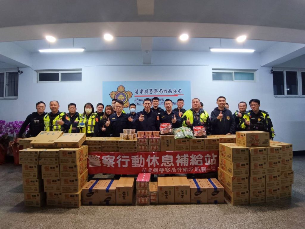 竹南警分局表示,本次補給站設置於分局 4 樓禮堂,並因應勤務特性,採取「定點休憩」與「線上運補」雙軌並行模式。由專人定時將熱騰騰的薑茶、燒仙草、糕點、乾糧及水果等多元化補給物資,直接運送至交流道及各景點周邊勤務崗位,確保同仁能適時調節體力、紓緩疲憊。