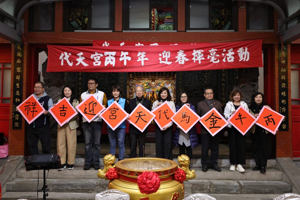 邱佩琳指出,今日適逢丙午年春聯揮毫活動,由多位書法名家現場揮毫春聯、春條與斗方,親手將祝福贈與市民朋友,讓大家提前感受濃厚的新春年味。她也笑稱,在眾多藝術家面前揮毫實屬自曝其短,但仍希望以最誠摯的心意寫下祝福,並代表市長謝國樑,感謝代天宮委員會長期以來對地方的用心經營與照顧,為社區注入安定與溫暖的力量,祈願持續為市民帶來平安與喜樂。