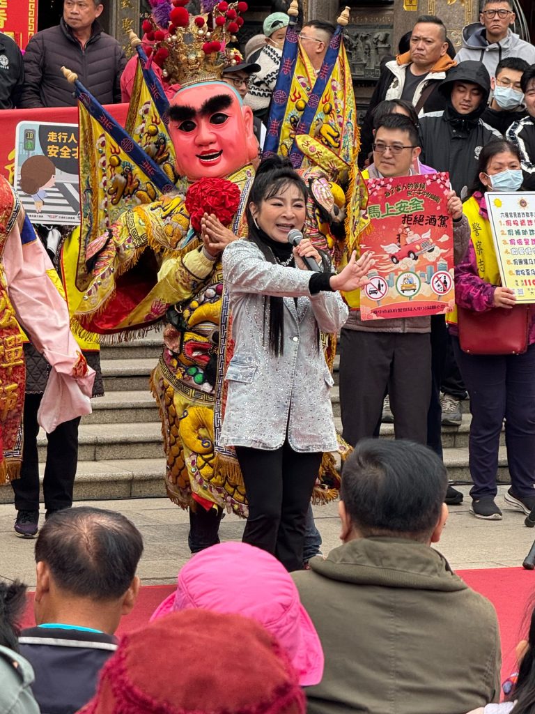 為讓民眾安心過好年,提升民眾防詐意識並強化交通安全觀念,大甲分局結合鎮瀾宮舉辦反詐騙及拒酒駕宣導活動,特別邀請有「保庇天后」之稱的藝人王彩樺及「重量級藝人」白雲到場站台,與警方攜手向民眾宣導反詐、防酒駕的重要性,並呼籲大家落實「馬上安全、拒絕酒駕」,共同守護安心年。