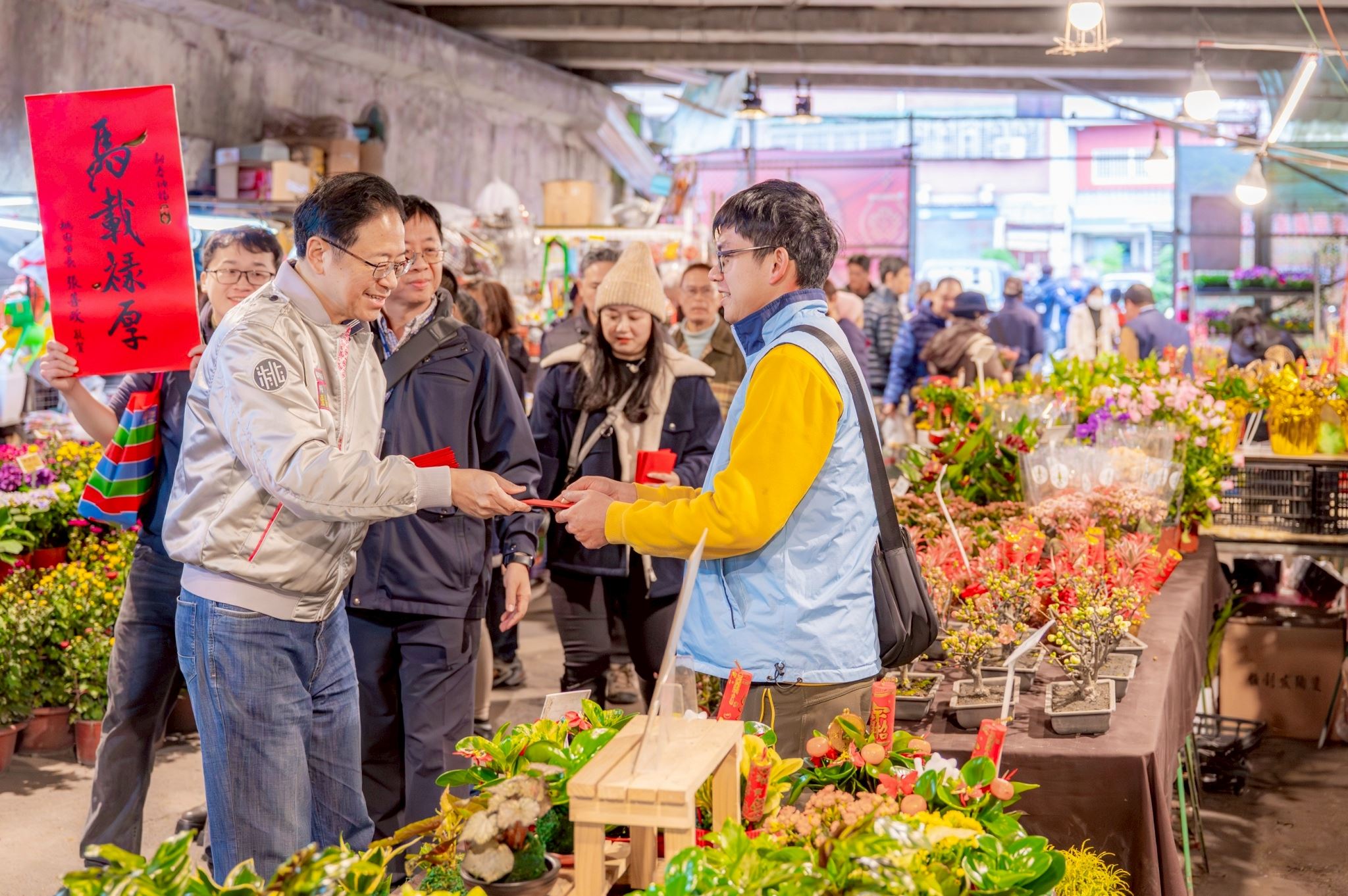 農業局指出,桃園為北部重要草花生產基地,素有「草花王國」之稱,其中盆花產值約占全國總產值42%,草花品質優良、品項多元,適合春節居家擺設。此外,市府正協調更新成功路橋老舊排水設施,並同步改善周邊環境配置,藉此提升營業環境品質,讓攤商安心經營、提供民眾更安全舒適的採買空間。