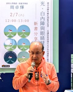 清大教授周卓煇主持這場新書《光、白內障與眼睛健康的真相》分享活動時指出:「白內障手術會給你換上清晰的人工水晶體,但是,問題就在過度清晰,藍光與紫光穿透過多,造成視網膜不可承受之重,勢將引發更多眼睛疾病,不得不做好術後防護。」