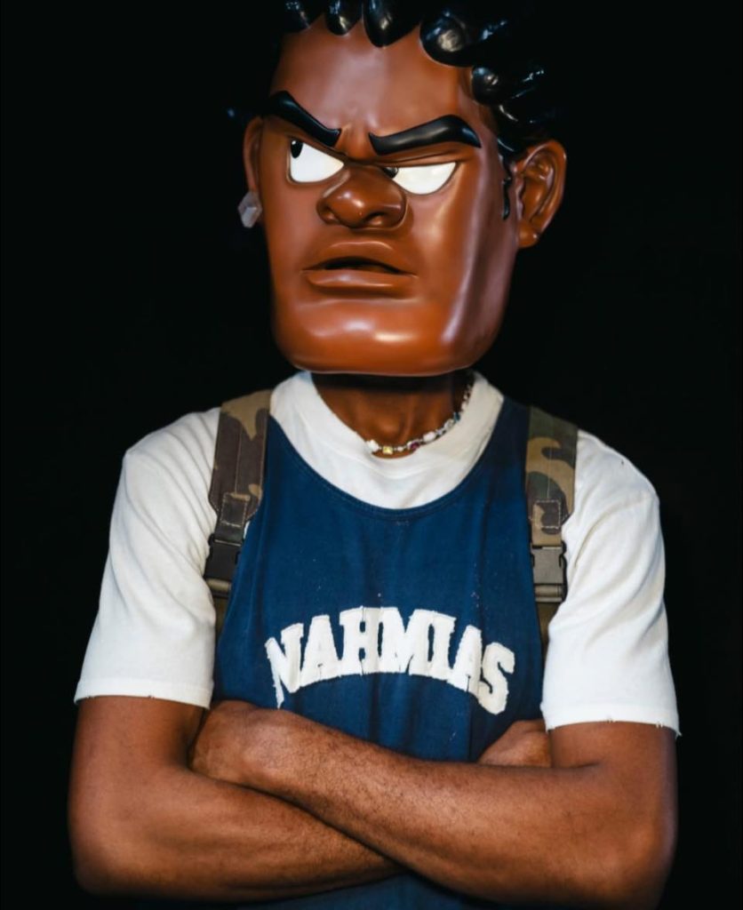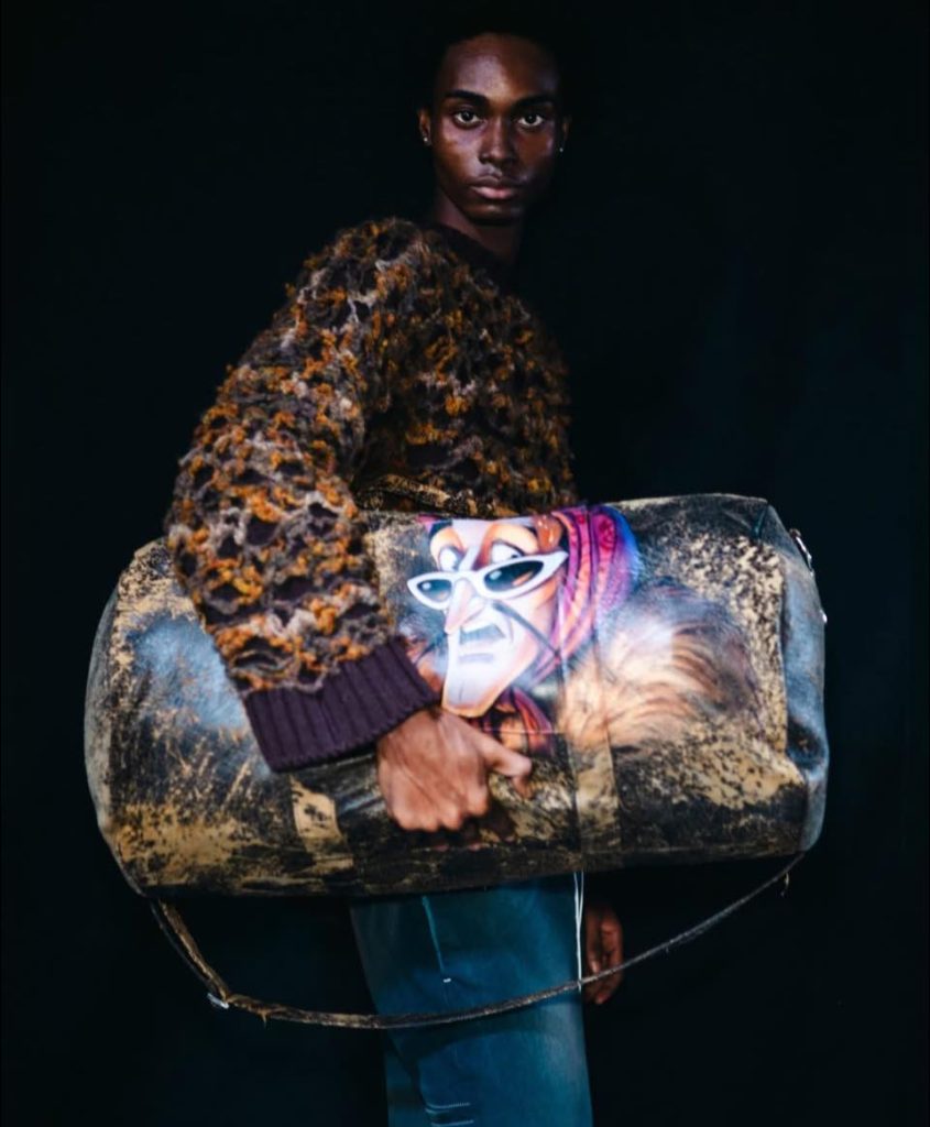 而大型旅行袋上的卡通圖案展現了一貫的玩味風格。大膽的視覺充滿童趣、在挑戰時尚的嚴肅邊界,試圖透過作品喚起大眾的想像力。
