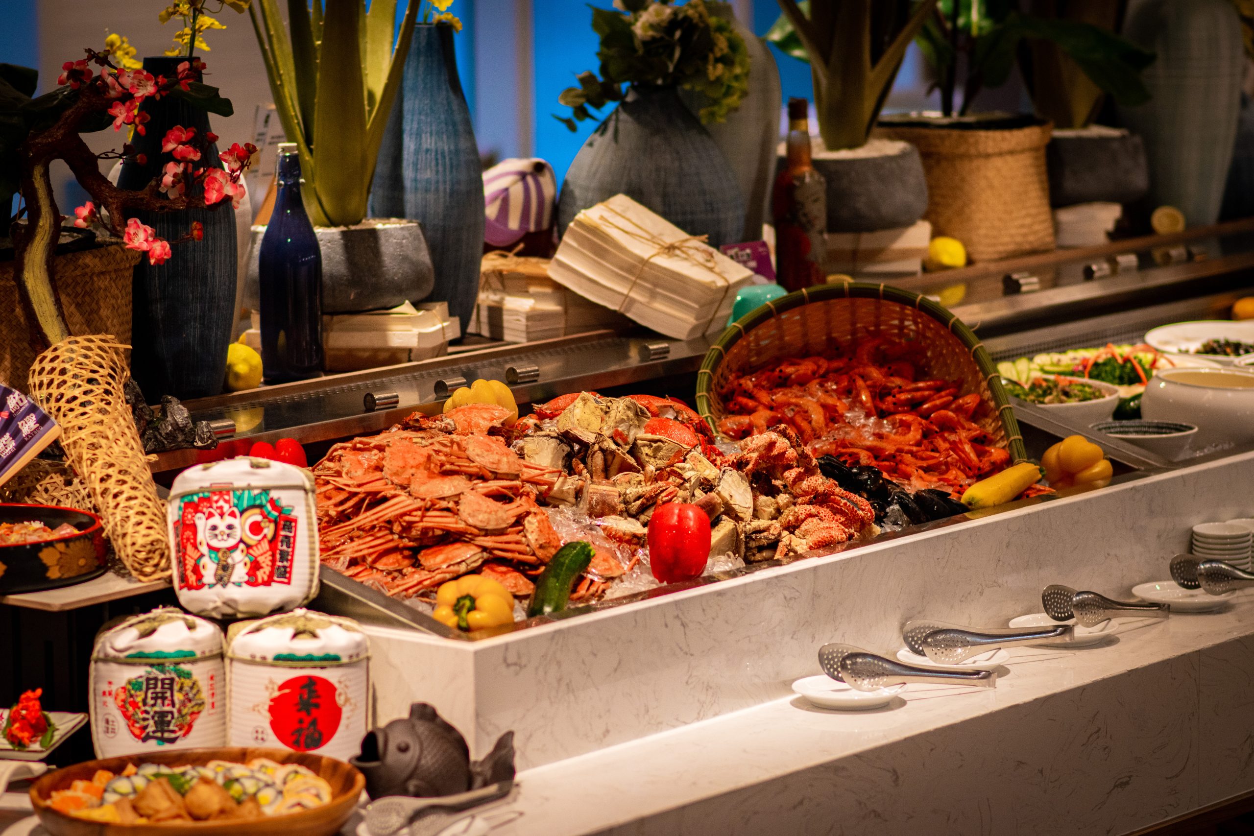 河畔餐廳以豐富多元的自助餐檯著稱嚴選新鮮食材從熱食冷盤沙拉現切料理到甜點與飲品一應俱全圖-將捷金鬱金香酒店提供