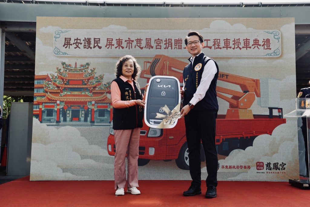 局長甘炎民感謝慈鳳宮熱心公益、慷慨相挺,強調工程車將妥善運用於號誌維修勤務,強化道路安全防護網;警察局也承諾會愛惜使用、熟稔各項設備操作,讓每一次出勤都更有效率,為屏東打造更安全、有序的交通環境。