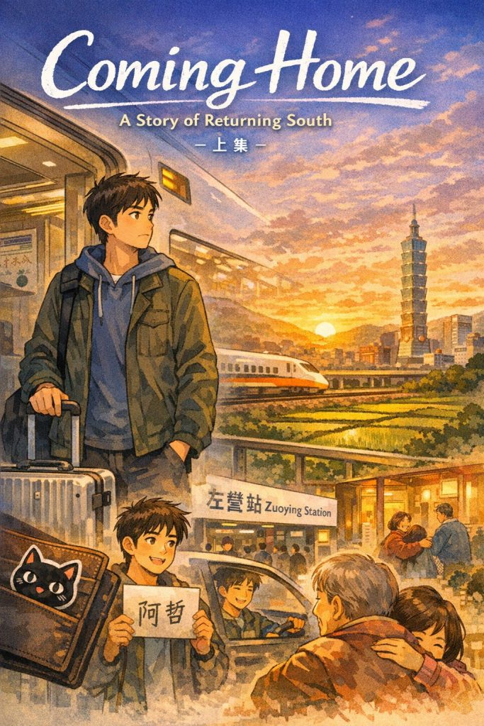 窗外的城市正在往後退,高樓變成公寓,公寓變成稻田。台北到高雄,三百六十公里,四個小時站票。從我工作的地方,回我出生的地方。