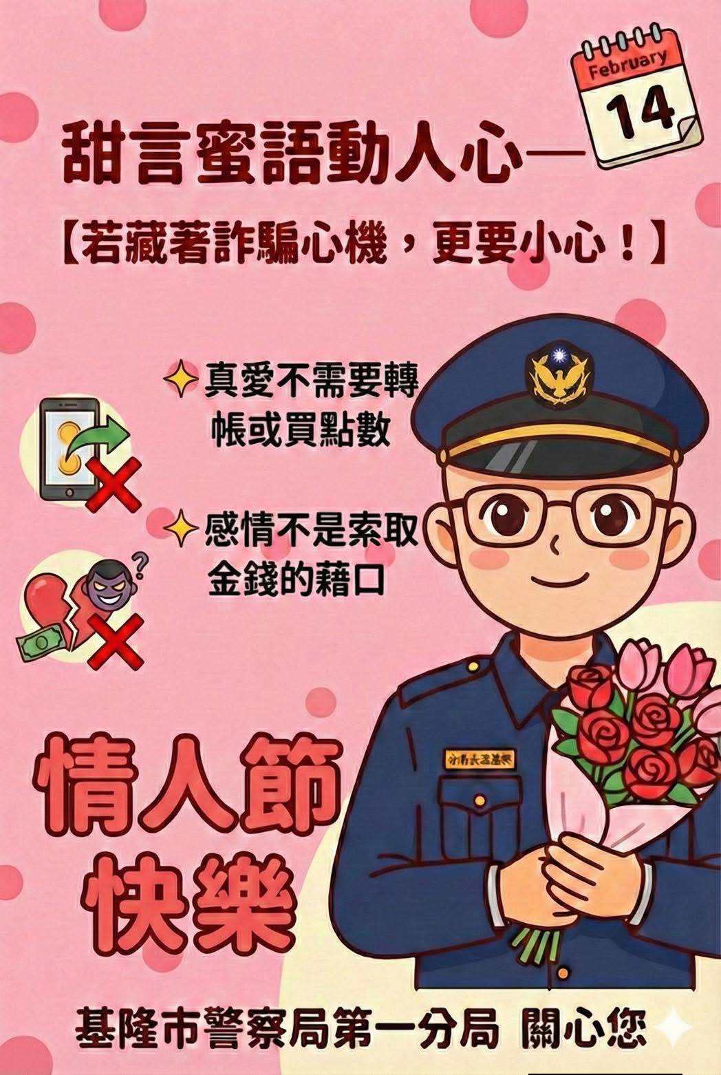 【記者 彭可可/綜合報導】今天是西洋情人節 準備好告白的情話了嗎?在這個浪漫的日子裡,甜言蜜語無疑能動人心絃,但若藏著詐騙的心機,大家更要提高警覺❗️