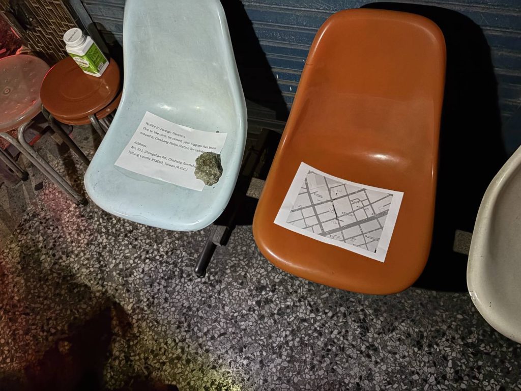 昨(23)日晚間21時許,臺東縣警察局關山分局池上聯合所接獲通報,表示「有外籍人士寄放於診所的登山包尚未前來領取,請派員協助處理」。員警隨即趕赴現場了解,得知該診所基於善意,暫時協助旅客保管行李,無奈等到即將休息仍不見失主返回,考量外籍旅客的行程與財物安全,只好向全天候服務的池上分駐所請求協助。池上分駐所所長蔡欣妤獲悉後,考量失主為外國旅客,若返程時找不到行李恐將徬徨無助,隨即發揮巧思,親自以英文撰寫告示,清楚說明因診所已關閉,旅客的行李已轉由池上聯合所代為保管,並詳列警所駐地地址,同時貼心附上簡易地圖,將告示張貼於診所門口,期盼旅客一回到原處即可明瞭行李去向。這項細心又充滿同理心的作法果然奏效。
