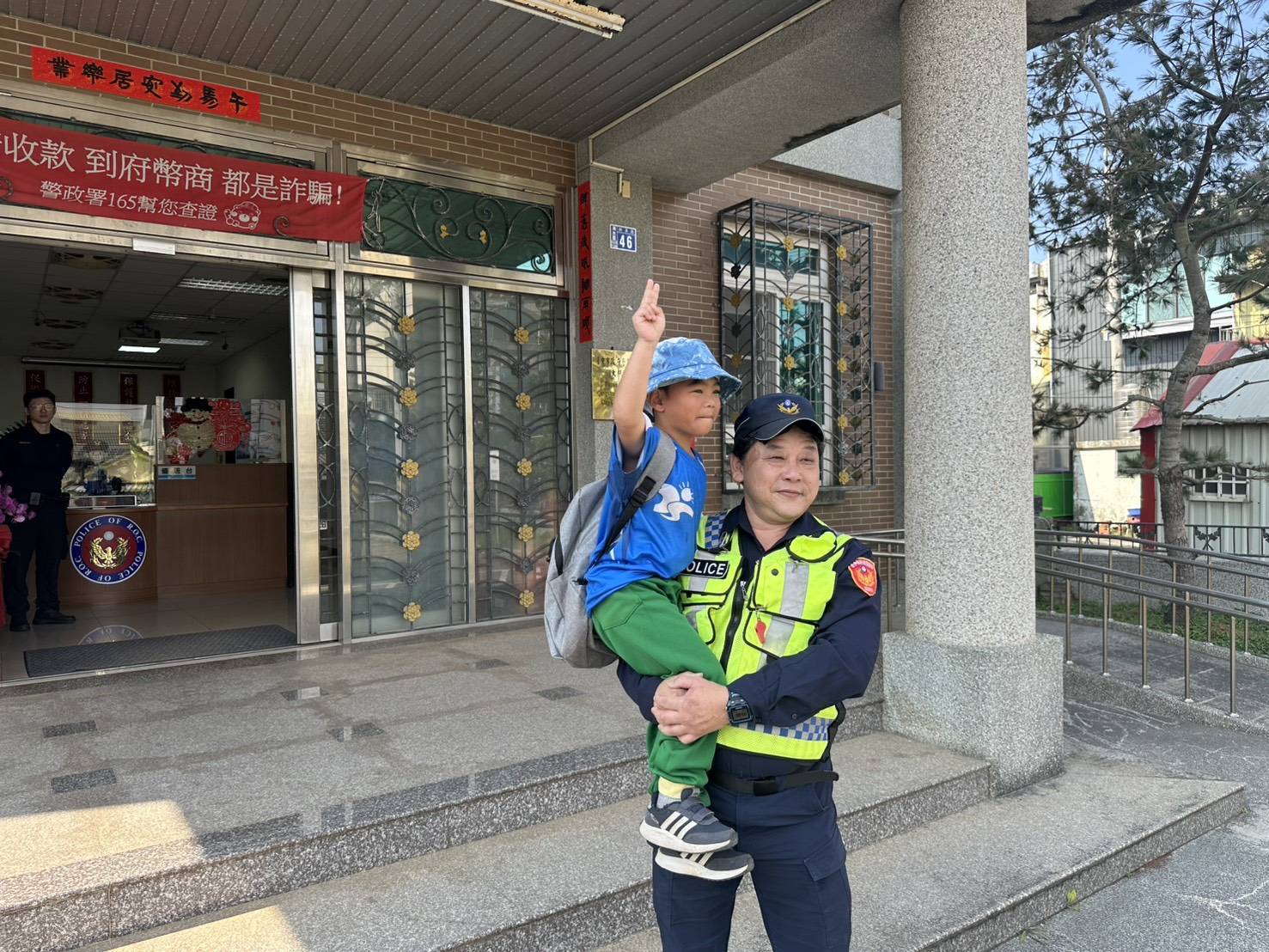 特別的是,活動結束後,一名小朋友當場要抱抱警察,所長也大方把他抱起來合照。