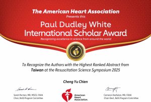 該獎項是為了表彰2025年復甦科學論壇(ReSS)中,來自台灣且評分最高的科學論文摘要作者。Paul Dudley White獎項象徵全球心血管及急救醫學界的頂尖學術指標,急診科簡振宇醫師的研究從全球眾多優秀作品中脫穎而出,展現台灣在急救醫學上的高度專業。
