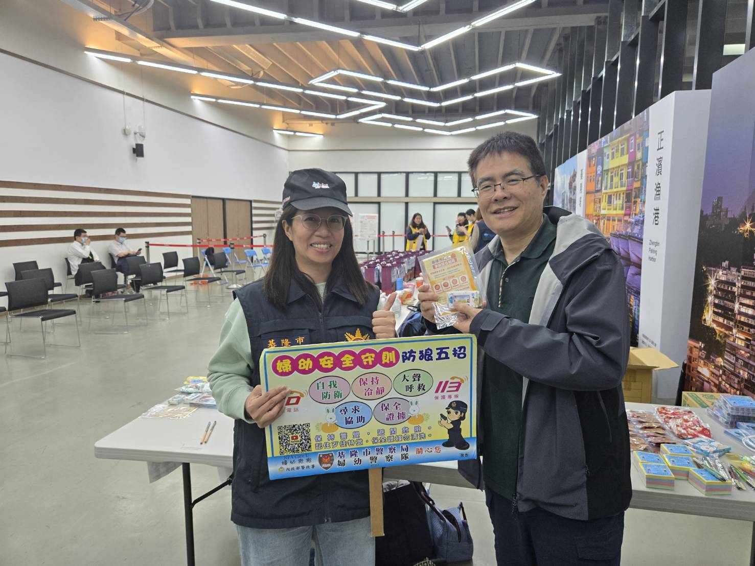 【記者 彭可可/綜合報導】響應萬海航運社會福利慈善事業基金會所舉辦捐血活動,市警局婦幼警察隊於3月4日,在基隆市基港大樓設攤宣導「假愛情真詐騙,防制性別暴力」犯罪預防宣導活動,並以社區推廣方式號召市民朋友能一起挽袖獻熱血。