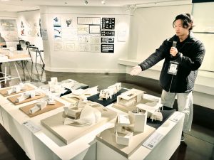 展出作品跨足多樣議題,展場入口以『物質的另一種運行』打開觀賞者的感官,《AI+機器人建造》,整合資料、幾何與製造的實作流程,探索數位製造時代的建築可能性。進入展場後的《形態工作坊》模型,則每年學士後一年級將建築師的空間思想拆解為幾何操作,運作轉譯邏輯,讓模型從表現媒材昇華為規則演繹的思辨容器。《當代建築玩具設計》則以變形結構與機械系統為研究基礎,結合自動控制技術,發展可討論變動空間的建築玩具。