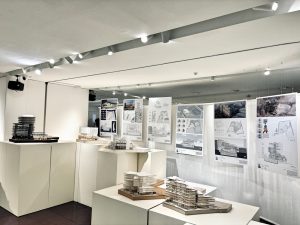 一樓另一區域展覽『棲居的另一種共存』作品,面對現今超高齡、少子化與家庭結構原子化的多重衝擊,集結了《跨世代共居 小住宅》《跨世代共居 集合住宅》,探討住宅在面臨居住結構的變遷,如何創造全齡向的公共節點,並且在「持續照護退休社區(CCRC)」概念中,集合住宅如何能創造能容納多個年齡層、承載社區系統,並回應都市街道向內延續的可能性。《建築智略》以社會住宅為議題,企圖用更全面的策略及永續經營,透過品牌化、系統化來建立新型態的住宅市場與信任。