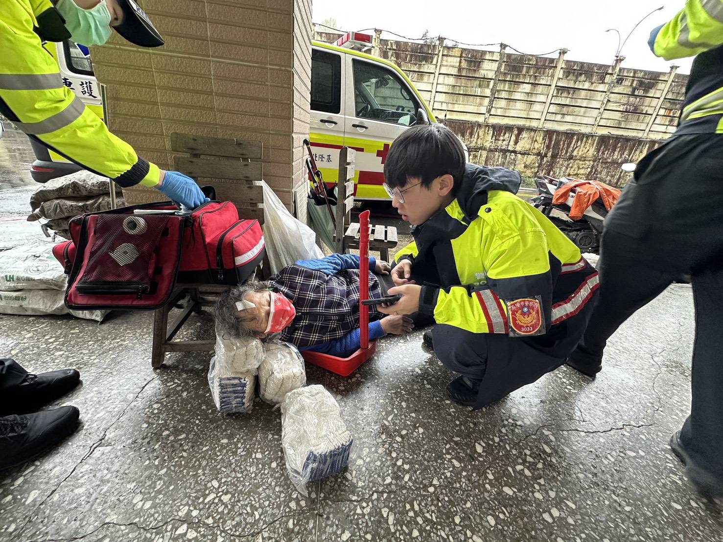經了解,該名老婦人疑因身體突感不適而倒地,導致額頭有擦傷,所幸意識尚清楚。因老婦人當時無法言語,身上亦未攜帶證件,員警先行安撫其情緒,並協助救護人員將其送往醫院治療;隨後由值班同仁聯繫家屬到院照護。