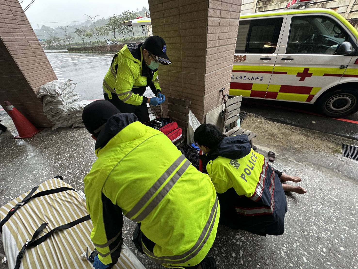 【記者 彭可可/綜合報導】基隆市警察局第三分局百福派出所於115年3月4日中午12時許接獲民眾報案,稱在基隆市七堵區福二街17號1樓前發現一名老婦人倒臥路旁,神情痛苦,疑似身體不適,所長林宸霆及警員李庭安獲報後立即前往關心。