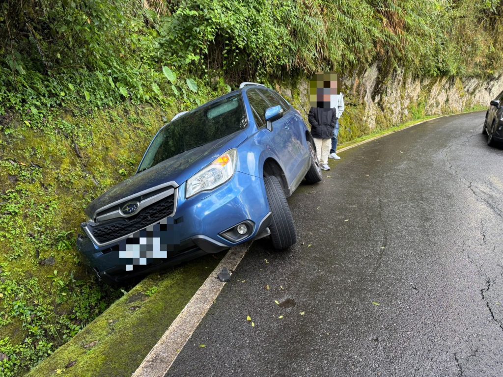 經了解,李姓男子與友人利用假日前往中橫沿線旅遊,行經該路段時因不熟悉山區道路狀況,右側車輪不慎滑落山溝,導致車輛受困,由於事發地點位處山區,周邊無其他人車可協助,情況一度相當無助,只好向警方求助。