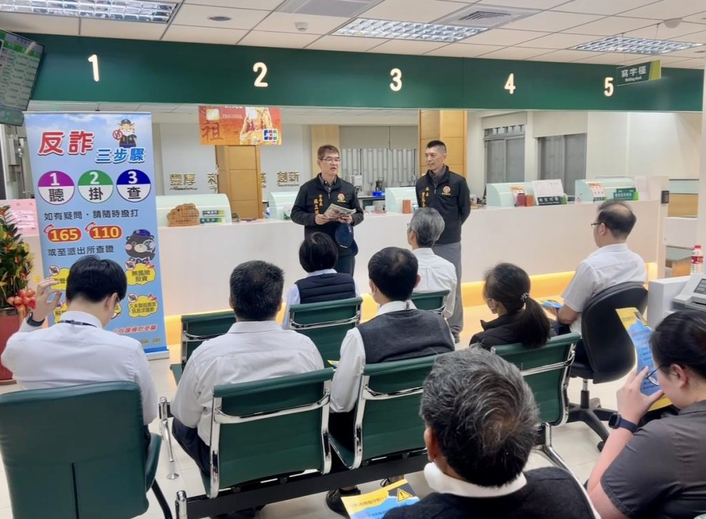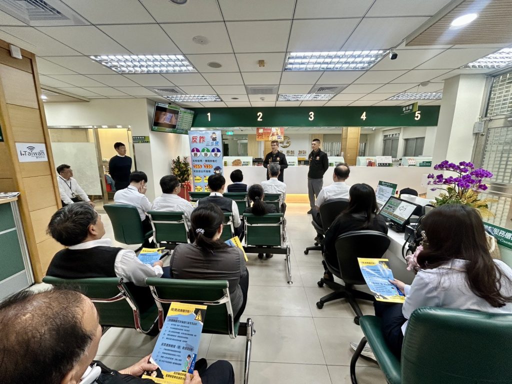 為落實警銀合作並強化第一線攔阻能量,通霄警分局分局長蘇立琮於115年3月11日上午,率領偵查隊同仁前往土地銀行通霄分行進行反詐騙宣導。蘇分局長除感謝行員辛勞外,更以近期轄內發生的一件「假投資」慘痛案例為戒,與行員共同檢討如何有效攔阻詐騙,守護民眾血汗錢。