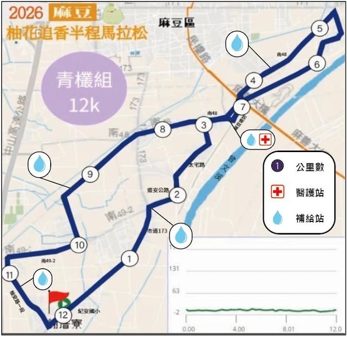 「2026柚花追香半程馬拉松─麻豆場」主賽事訂於115年3月15日(星期日)6時至14時,假本市麻豆區紀安國民小學(起、終點)舉辦,賽事預計自上午6時30分起分梯次起跑,沿線行經麻豆、佳里等區,吸引超過1千名跑者報名參與。