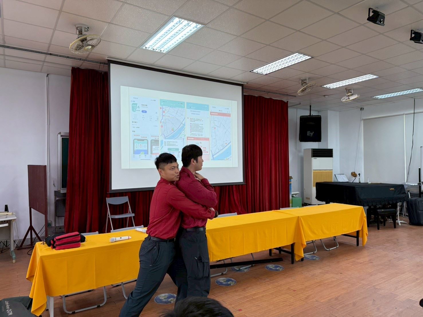 活動過程中,消防人員結合實際案例與現場演練,生動說明各類災害的預防機制。在 CPR 與 AED 的實作環節中,教職員工積極參與、互動熱烈,紛紛針對急救細節向消防隊員尋求專業建議,現場氣氛融洽且充滿學習動力,有效建立起第一線教育人員與專業消防人員之間的良性互動與安全默契。