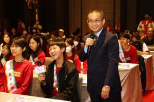 靈鷲山慈善基金會執行長蔡高忠以《The Social Chameleon》動畫短片為引,勉勵學子「昂首闊步:譜一曲精彩人生樂章」;並巧妙運用curiosity(好奇)、courage(勇氣)、create(創造)、challenge(挑戰)、change(改變)、confidence(自信)、constancy(恆心),期盼「7C(喜)人生」讓孩子各自閃耀獨特光芒。他提及推動中的「靈鷲送AI,偏鄉助學」、「普仁恆星計畫」、「普仁大太陽成長營」三條軸線,擴大服務的廣度與深度,使愛的循環不僅止於一場頒獎典禮。充滿智慧的分享,加上別出心裁的互動,為慈善志業注入創新的思維。
