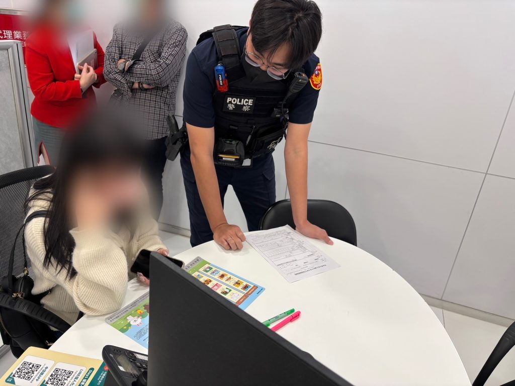 苗栗縣警察局頭份分局於115年3月25日9時許,接獲銀行報案稱有疑似詐騙案件,頭份派出所警員鄭銘菘、張芷嫣立即前往處理,發現有1名黃姓女子(86年次)正欲匯款新臺幣80萬元。