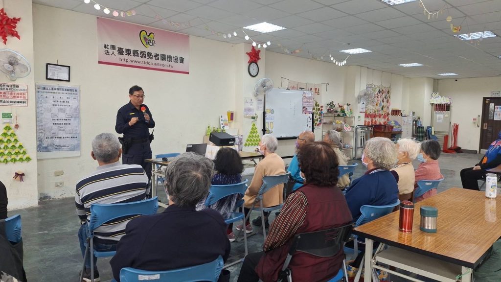 日前,太麻里所所長廖志宗率警員黃雯莘前往太麻里鄉弱勢關懷協會,針對當地長者、身心障礙者及經濟弱勢家庭成員辦理反詐騙及交通安全宣導。期盼透過面對面交流與互動,加深民眾對常見詐騙手法及用路安全觀念的認識。