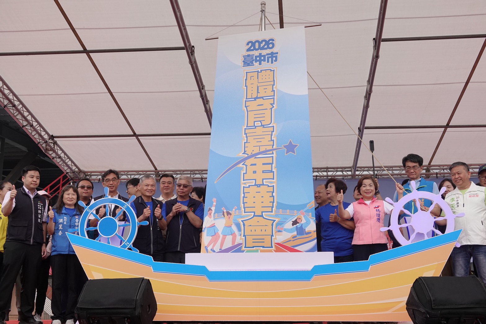 第24屆「台中市體育嘉年華會」今(29)日於大里高中熱鬧登場,台中市政府攜手台中市議會及台中市體育總會共同辦理,去年首度移師屯區舉辦即獲熱烈迴響,今年延續高人氣,吸引超過萬名市民踴躍參與。現場除規劃15項趣味闖關活動外,更首度加入新興運動「匹克球」友誼賽,打造兼具娛樂與運動的全民盛會。運動局長游志祥代表市長盧秀燕出席開幕典禮,與台中市體育總會秘書長暨市議員蘇柏興共同轉動象徵啟航的船舵,展現台中推動全民運動持續邁向新高峰。