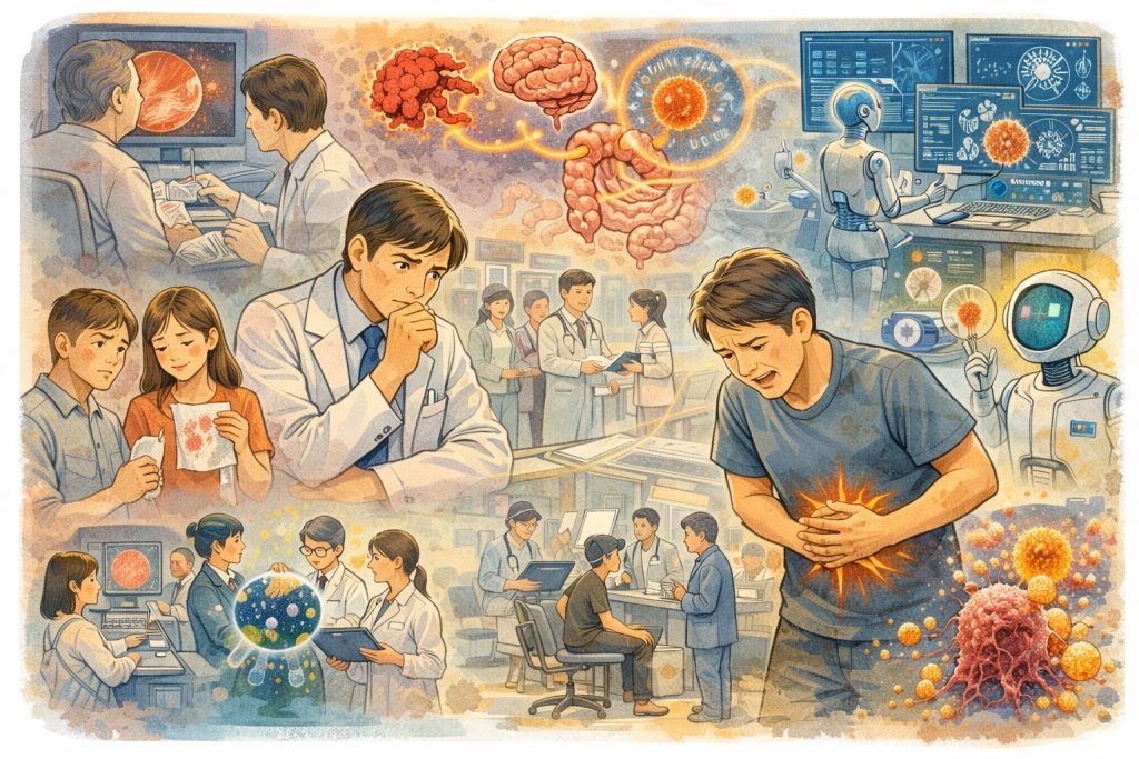 首先,人工智慧(AI)已不再只是影像判讀的輔助工具。今年的最新研究推出了「ChatIBD」這樣的臨床AI助手,它能在幾秒內比對全球30多份臨床指引,協助醫師在複雜的生物製劑選擇中做出最精準的決策 。在直腸癌預測方面,AI透過分析影像組學,已能更準確地預測患者對化放療的反應,幫助部分幸運的患者避免切除肛門的手術,保留生活品質 。