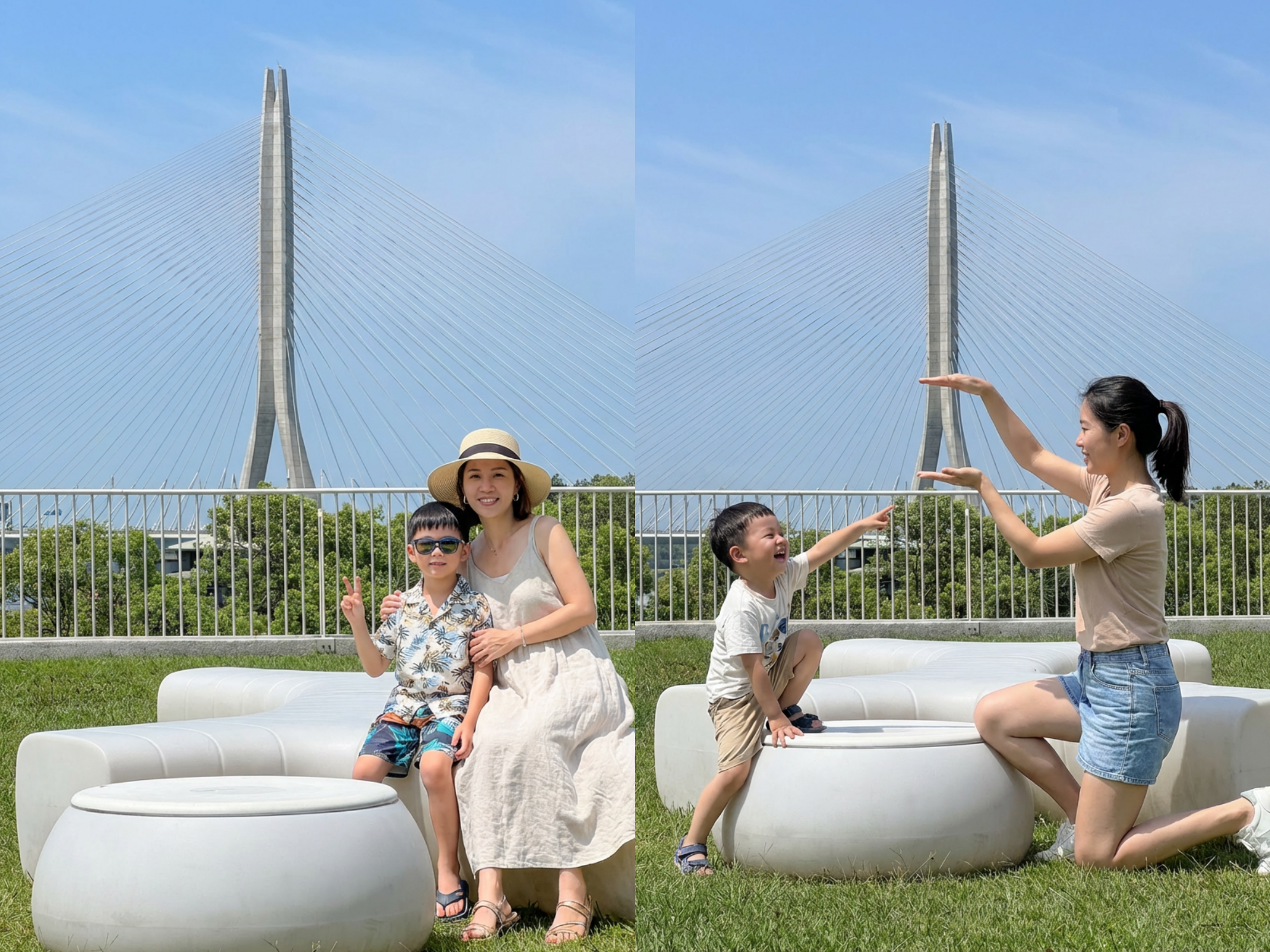 活動在酒店R樓「望高樓」舉行,這裡擁有絕佳視野,能將淡江大橋、淡水河岸與觀音山盡收眼底。無論是藍天白雲下的壯闊橋景,或是夕陽餘暉灑落河面的金黃浪漫氛圍,皆是完美打卡時機。旅客只需在望高樓消費後,拍攝與大橋合照,上傳至酒店官方Facebook指定貼文留言,並在現場出示畫面,即可兌換限定迷你冰棒一支,冰涼甜蜜入口瞬間融化疲憊。Zaha Hadid Architects操刀設計的淡江大橋,更以空氣動力學融合美學,成為淡水新地標。