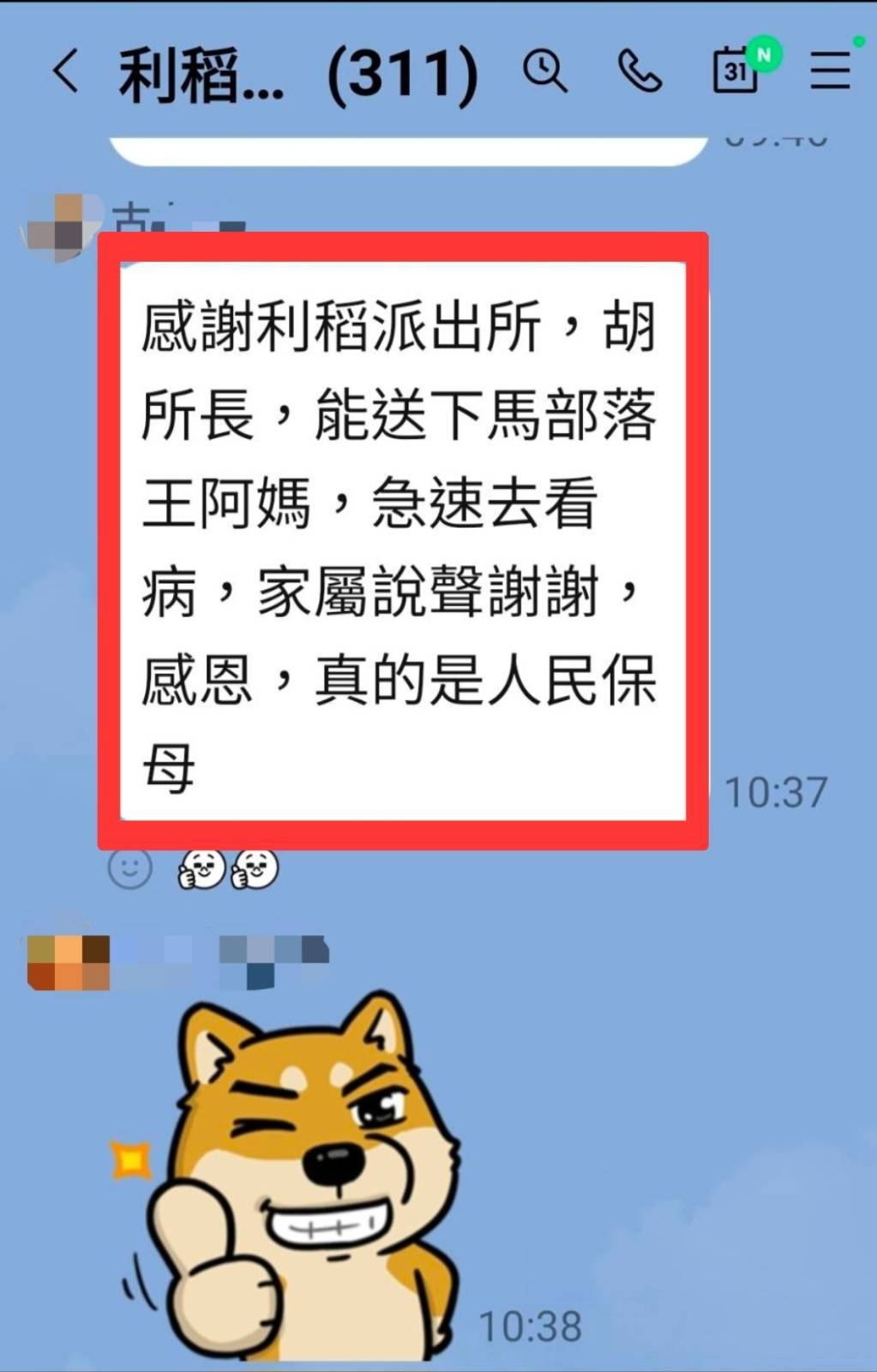 關山警察分局表示,當日9時許,利稻派出所所長胡松俊仁欲至分局洽公,行經該路段時,看見於霧鹿服務時認識的王姓老婦,遂向其打招呼,但卻發現她神情痛苦,疑似身體不適,遂立即停車上前關心,發現王婦臉部明顯腫脹,且不時以手撫臉。經關懷詢問後才得知,王女因牙齒劇痛難耐,原打算搭便車前往關山地區醫療院所就醫,但因地處偏遠、交通不便,長時間苦等仍無人願意載送,情況相當無助。胡松所長考量王女年事已高且獨居,若延誤就醫恐加重病情,當機立斷協助護送前往醫院治療。沿途所長細心關心王婦狀況,並安撫其不適情緒,讓原本焦急不安的王婦逐漸安心。抵達醫院後,經醫師診治確認為牙齒嚴重發炎,隨即安排相關處置,順利解除疼痛。事後,胡松所長仍持續關心王婦健康狀況,並於昨(9)日特別前往探視。王女表示,經醫師治療已順利拔除病牙,疼痛狀況大幅改善,身體也恢復良好,對於警方即時伸出援手深表感激,頻頻向所長道謝,直言「若不是警察幫忙,真的不知道該怎麼辦」。另外,王婦的孫女也特別在部落內Line群組發文,表達對胡松所長熱心協助的感謝之意,貼文一出也獲得族人紛紛按讚與回應,傳為佳話。