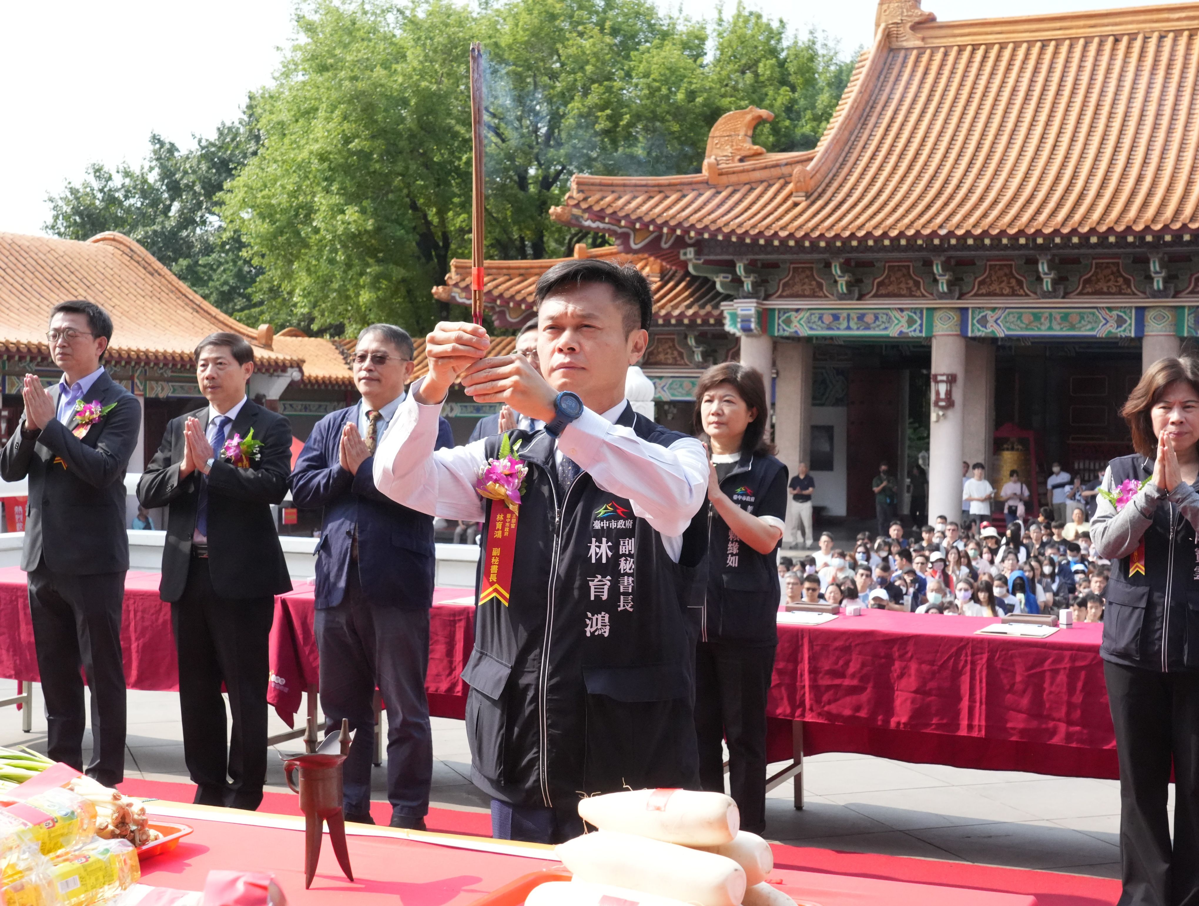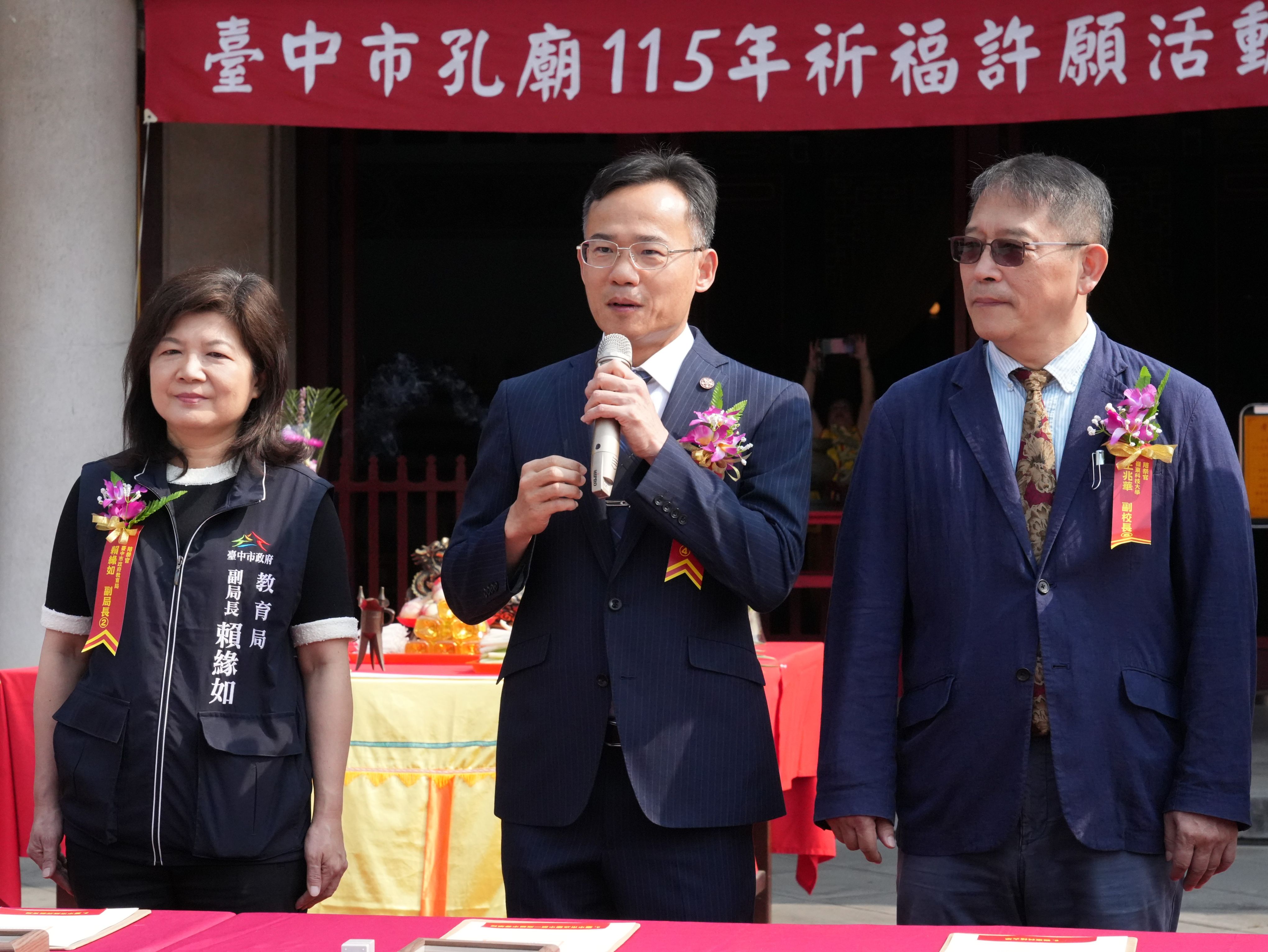 今日活動,副秘書長林育鴻、民政局副局長陳寶雲、教育局副局長賴緣如、東區區長吳忠聖、石岡區長徐天龍、台中市孔廟所長李書華、台中一中校長林隆諺、台體大校長許光麃、嶺東科大副校長王兆華、台中科大教務長戴錦周、台中高工校長黃尚煜、台中女中教務主任蔡岳璟、台中教育大學師資培育暨就業輔導處長楊裕貿均出席共襄盛舉。