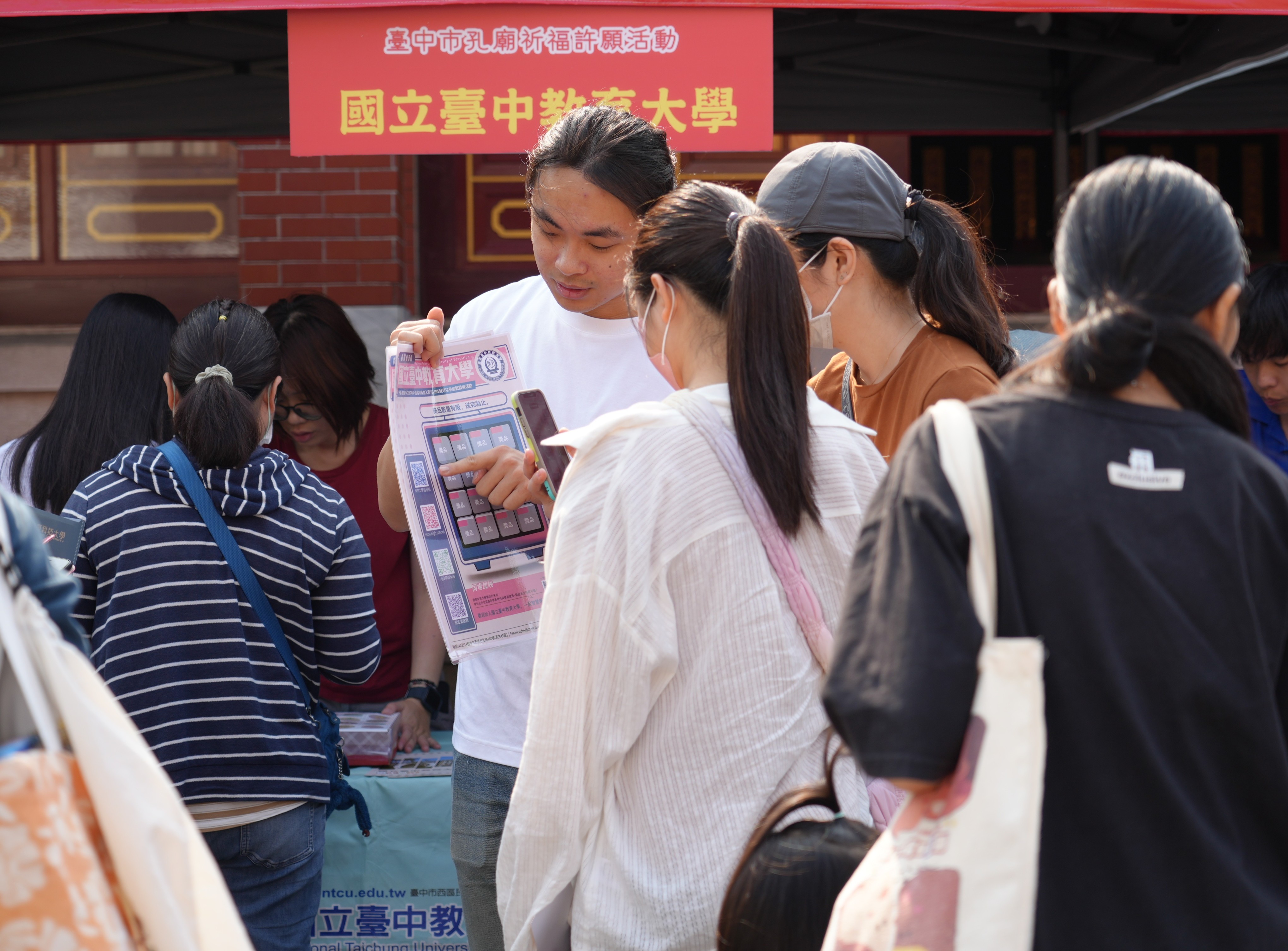 台中市孔廟所長李書華提到,今年活動邀請中部多所大學設置「未來志向諮詢攤位」,提供升學方向與科系選擇建議,讓考生在祈福之餘,也能進一步思考未來志向與人生規劃;現場另設有Q版先師拍照立板及應援手拿牌,吸引不少考生與親友合影留念,為考試季增添輕鬆氣氛。活動不僅為學子加油打氣,也呼應SDGs第4項「優質教育」及第11項「永續城鄉」目標,展現台中市在文化保存與教育推廣上的具體實踐。