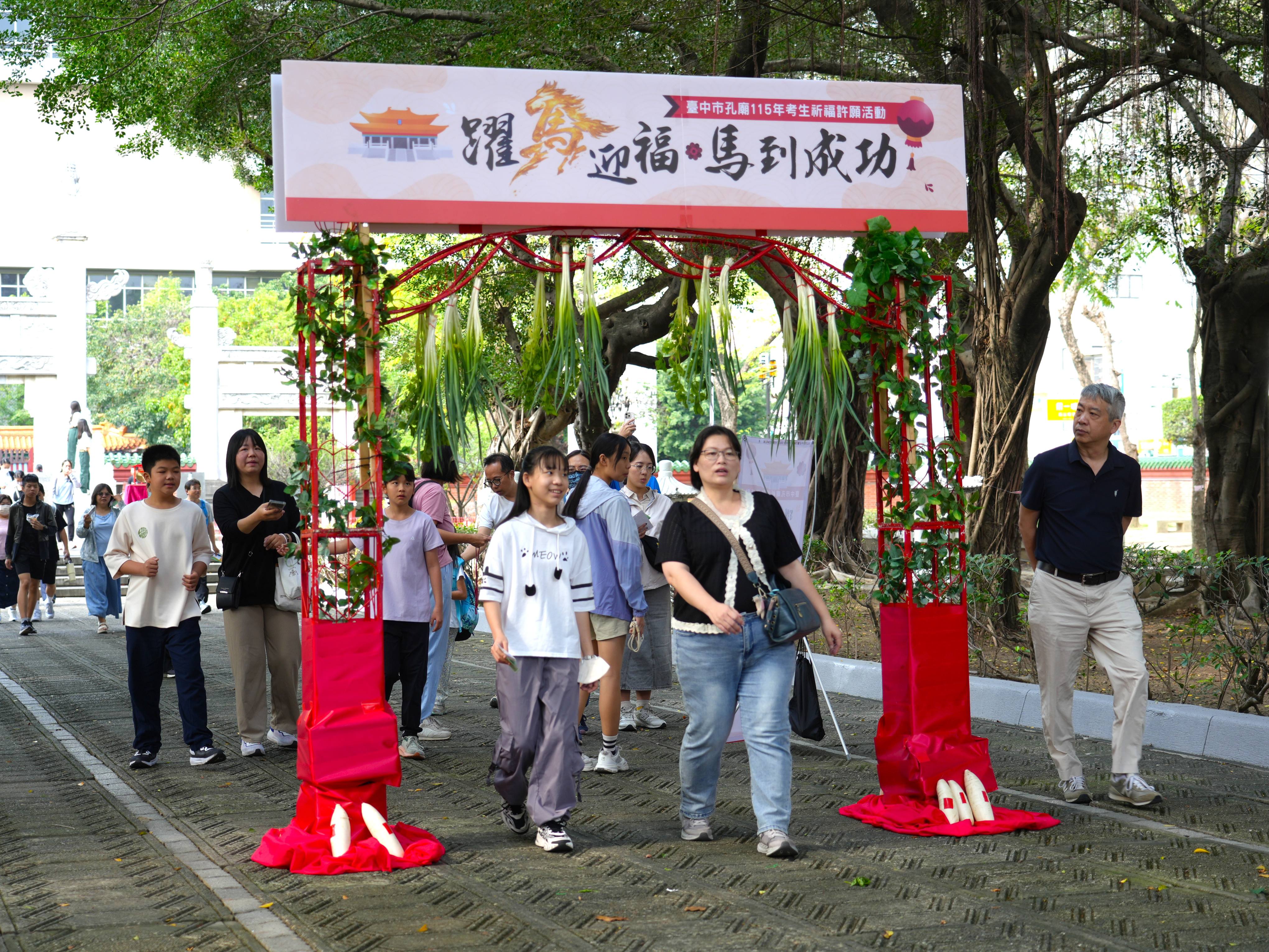 林副秘書長表示,台中市孔廟長年承載尊師重道、崇文重學的文化精神,不僅是重要的歷史場域,也是許多學子考前寄託心願、凝聚信心的重要場所。多年來,孔廟持續舉辦考生祈福活動,融合傳統禮儀與創新設計,陪伴學生在大考前沉澱心情、安定思緒,以更從容、自信的態度迎接挑戰。他也以今年活動主題「躍馬迎福、筆定金榜」,祝福所有考生都能馬到成功、金榜題名,穩健邁向理想目標。