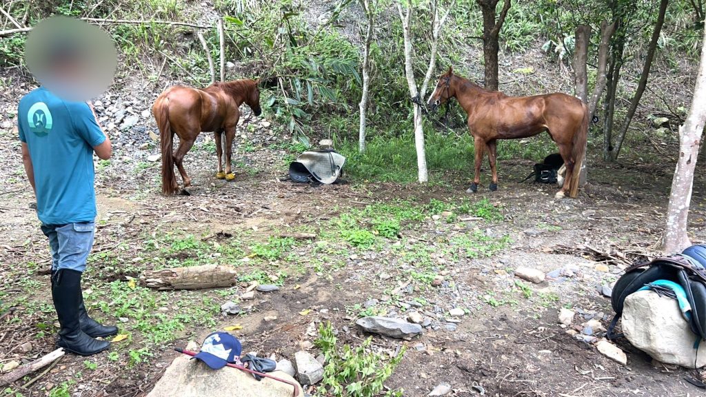 發現3名行為人出現在苗21鄉道11.9K處附近,警方趕赴現場後於路旁樹林發現鄧男(63年次)、蔡男(63年次)、傅男(56年次)3名行為人與馬匹蹤跡,3人均坦承確有於道路騎乘馬匹之事,警方依法製單舉發後,告知3人將馬匹以貨車載離現場,未再持續影響交通。