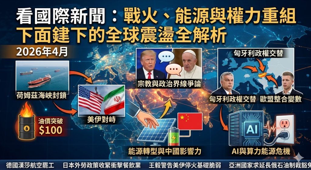 2026年4月的國際局勢,正呈現出一種少見的高度連動狀態。從中東戰火到能源價格,再到政治權力結構與科技產業,彼此之間已不再是單一事件,而是交織成一場牽動全球的系統性風暴。
