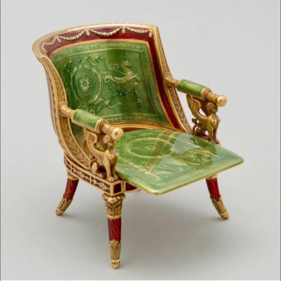 由法貝熱工坊大師 Henrik Wigström 於 1911 年打造的小椅子,並非單純的裝飾品,而是一件充滿驚喜的「黃金糖果盒」。