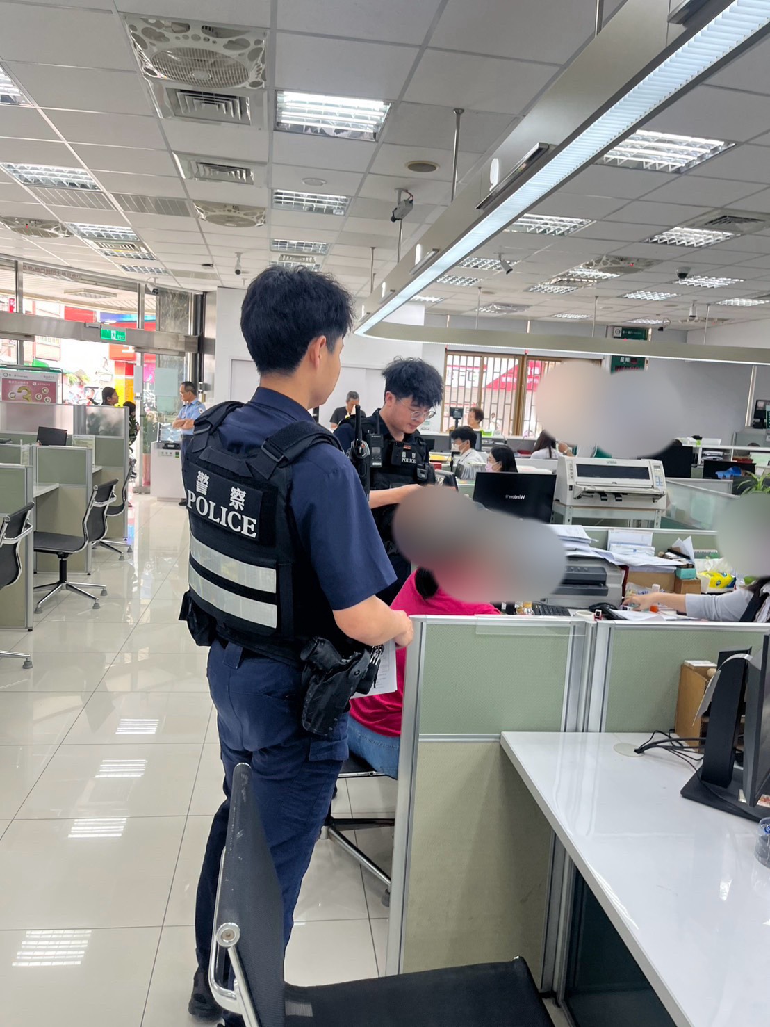 苗栗縣警察局頭份分局頭份派出所於115年4月15日11時許,接獲銀行報案稱有疑似詐騙案件,頭份派出所警員許宸堃、藍新瑋立即前往處理,發現一名盧姓女子(58年次)欲臨櫃取款170萬元。