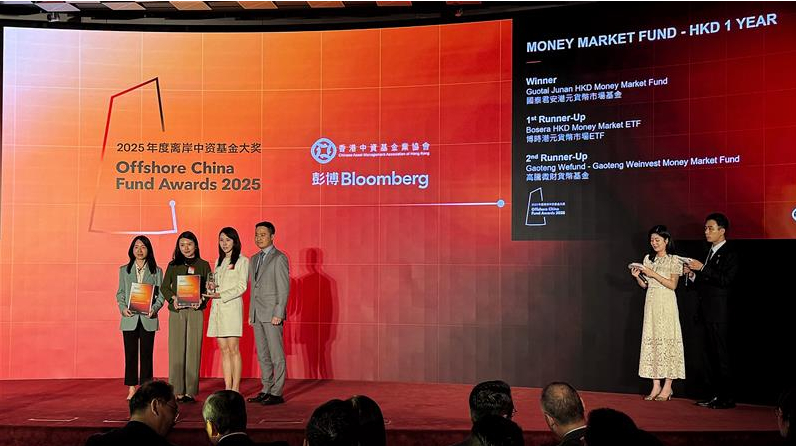 近日,香港中資基金業協會(HKCAMA)與彭博聯合宣布2025年度「離岸中資基金大獎」獲獎名單。國泰海通集團下屬公司國泰君安國際控股有限公司(「國泰君安國際」或「公司」,股份代號:1788.HK)旗下國泰君安港元貨幣市場基金憑藉出色的市場表現,榮獲「貨幣市場基金 – 港幣(1年)(Money Market Fund – 1 Year Return HKD)」冠軍殊榮。