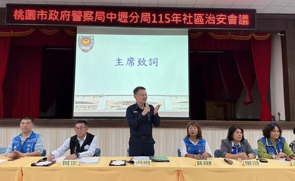 【記者葉志成 /桃園報導】為強化社區治安維護、激發民眾自我防護意識,並提升交通管理效能及警政服務品質,中壢警分局於16日晚間,在中壢區公所禮堂舉辦「115年社區治安會議」,桃園市政府警察局警政監王鉉仁、刑大副大隊長周振發、交大副大隊長林健祥、防治科科長顏證文及犯罪預防科科長殷盤銘親自到場,也廣邀民意代表、里鄰長及社區民眾踴躍參與,並特別邀請新住民代表一同出席,廣納多元族群意見,共同關心地方治安與交通議題。